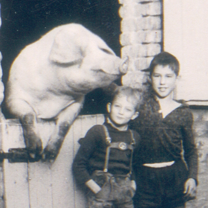 Büttgen – Dieser Schnappschuss gelang einem Fotografen Anfang der 60er Jahre auf dem Hof von Peter Hoster, als sich (v.l.) Heinzi Leßmann, Josef Hoster, Albert Lehmann mit einem weiteren Bewohner des Hofes in Positur stellten.
