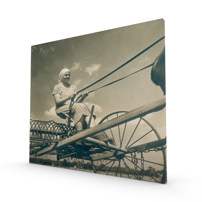 Holzbüttgen – Bäuerin Elisabeth Kremer, geb. Hoeveler, auf dem Rechen ("Herk") bei der Heu-Ernte